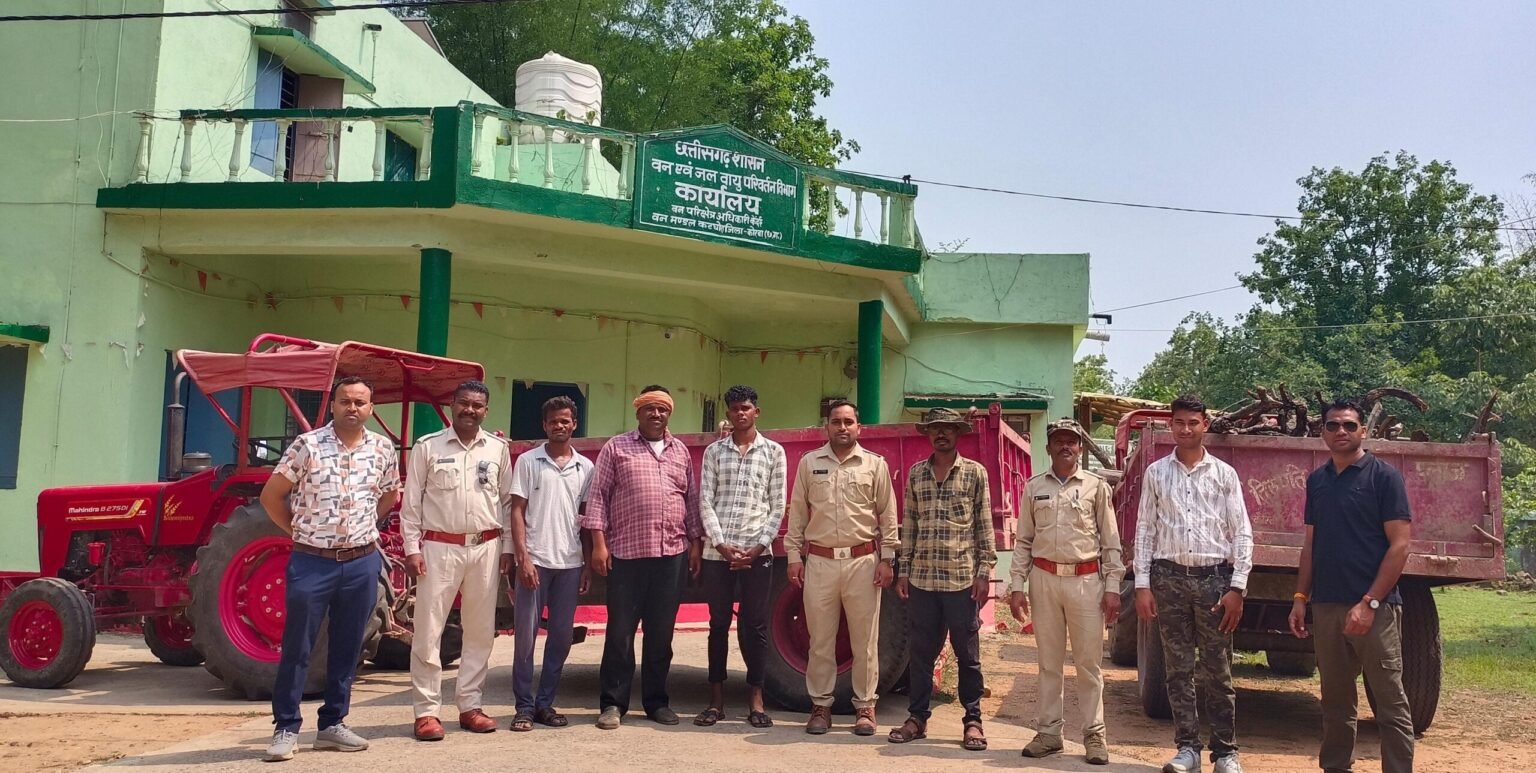 जप्त सामग्री – 01 नग ट्रेक्टर ट्राली सहित लगभग 02 चट्टा जलाऊ लकड़ी भरा हुआ।